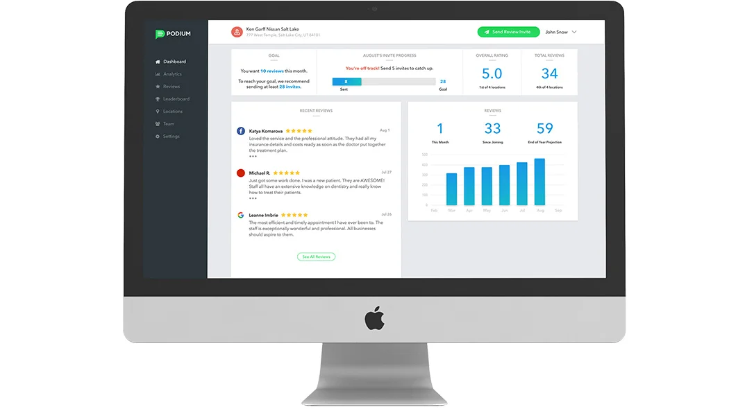 Podium brings marketing, operations, and customer experience into one platform, helping businesses drive user-generated content to better understand customers, increase visibility, and influence purchase decisions. Built to utilize everyday consumer technology, Podium enables you to influence what is said and where it’s said by focusing on the sites and the metrics that matter most to your business.
